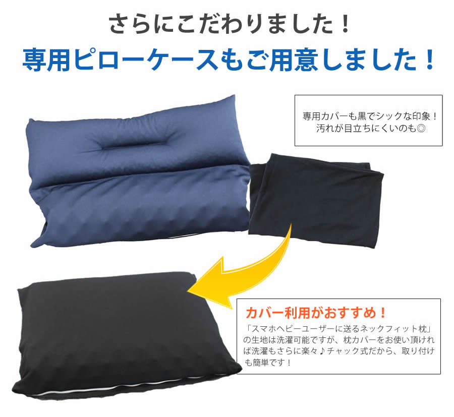 スマホヘビーユーザーにおくるネックフィット枕は専用枕カバーとのセットでの購入がおススメです。